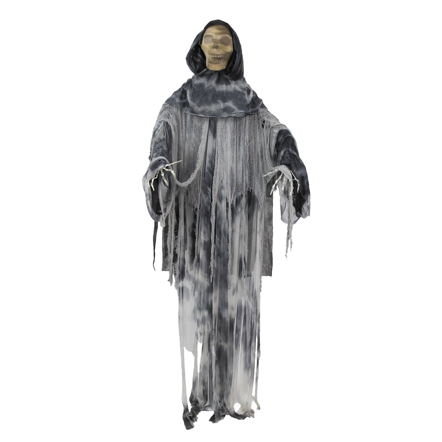 Con su túnica negra, su capucha siniestra y esa presencia de “la Parca ha llegado a por ti”, convierte cualquier Halloween en un velatorio deluxe. Lo pones en la entrada y ni hace falta timbre: la visita ya se queda tiesa antes de llamar.